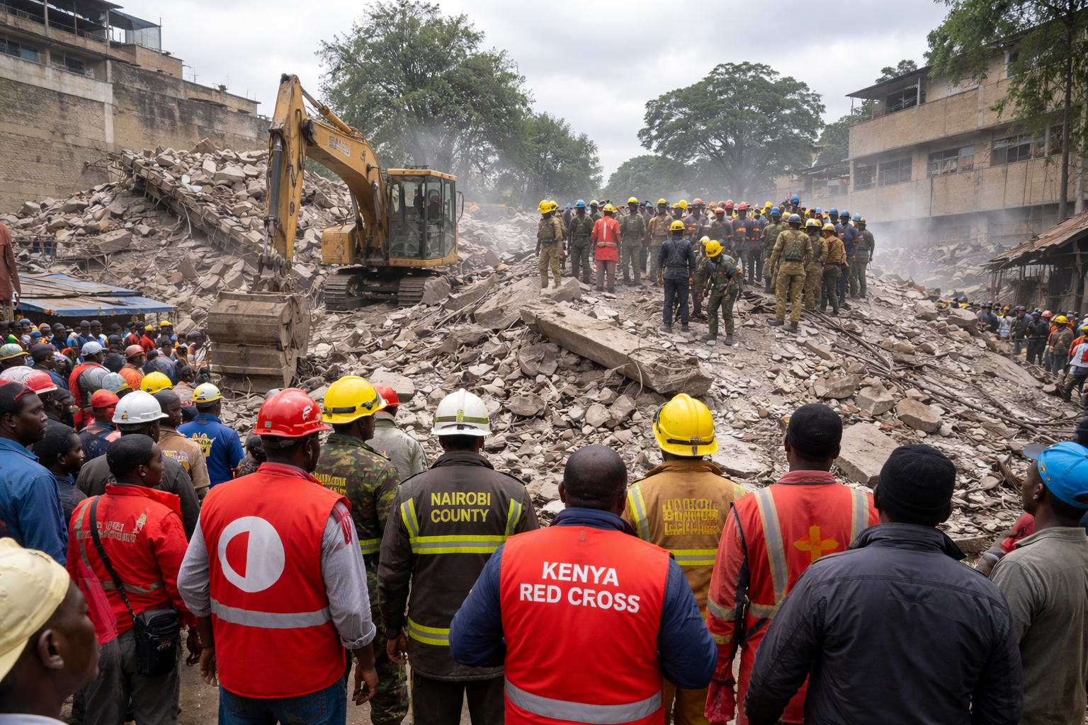 According to the Kenya Red Cross, the structure collapsed adjacent to buildings that were being demolished on riparian land, triggering an emergency response as rescue teams rushed to the scene.